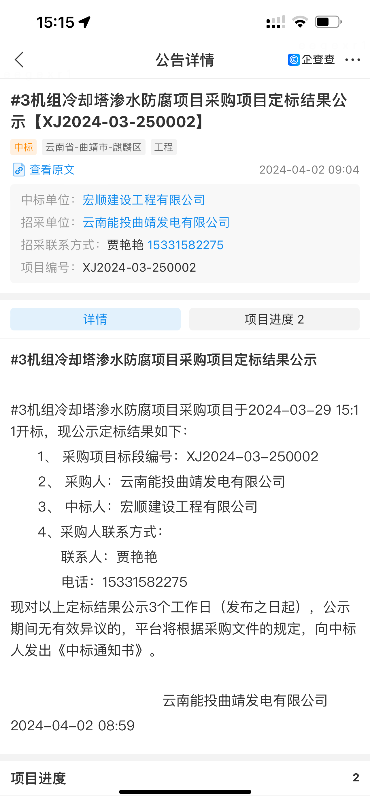 熱烈祝賀我公司中標云南能投曲靖發電機組冷卻塔內防腐項目